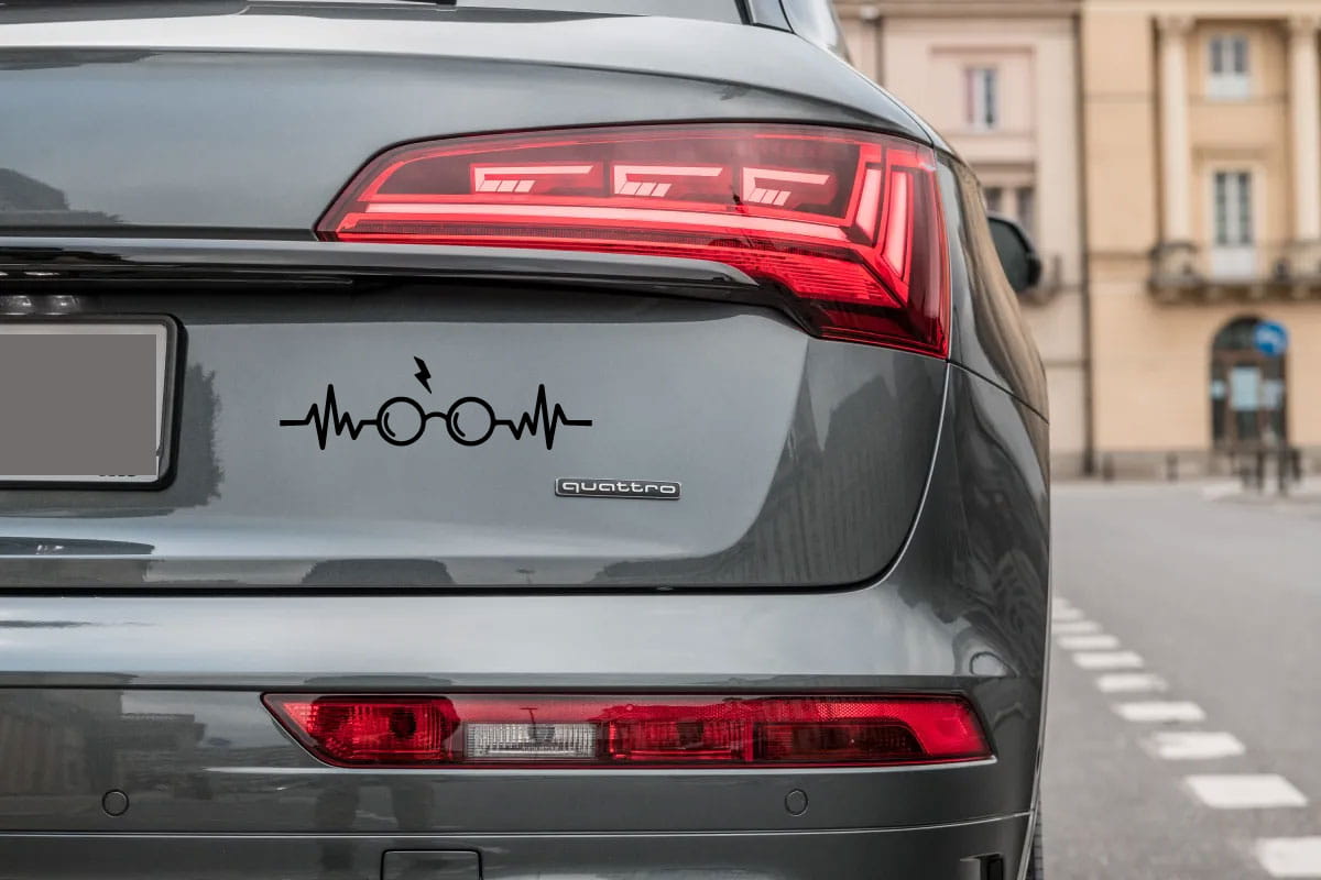Naklejka na samochód z linią życia i okularami Harrego Pottera z charakterystyczną błyskawicą nad nimi to wyraz pasji i miłości do tej kultowej postaci literackiej i filmowej.