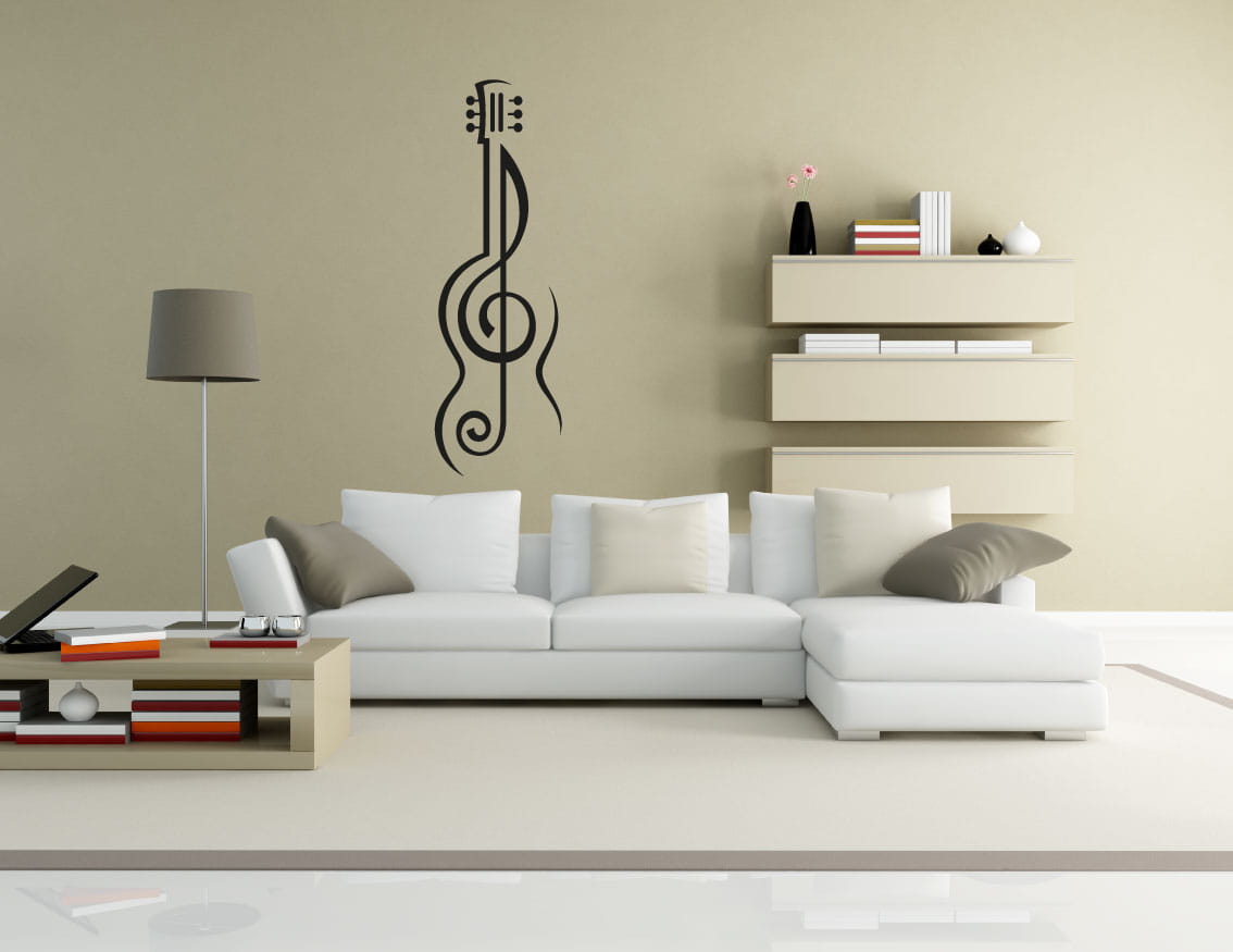 Uwielbiasz akustyczne dźwięki? Muzyka to całe Twoje życie? Naklejka ścienna Gitara będzie doskonałą ozdobą Twojego wnętrza. Wybierz odpowiedni kolor, rozmiar oraz miejsce aplikacji, a potem już tylko ciesz się metamorfozą swojego wnetrza.
