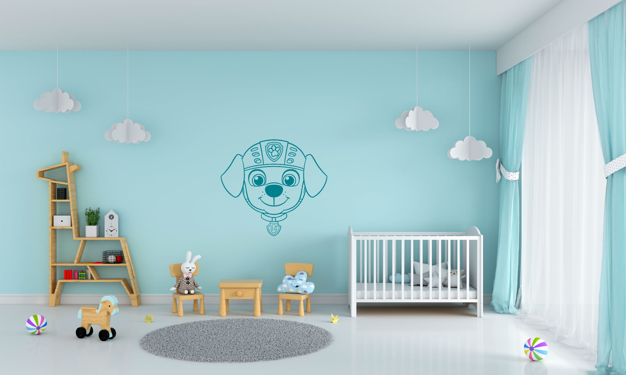 Naklejka na ścianę do pokoju dziecięcego nie posiada tła, obwódek czy przezroczystych elementów, dzięki czemu po naklejeniu wygląda bardzo estetycznie.