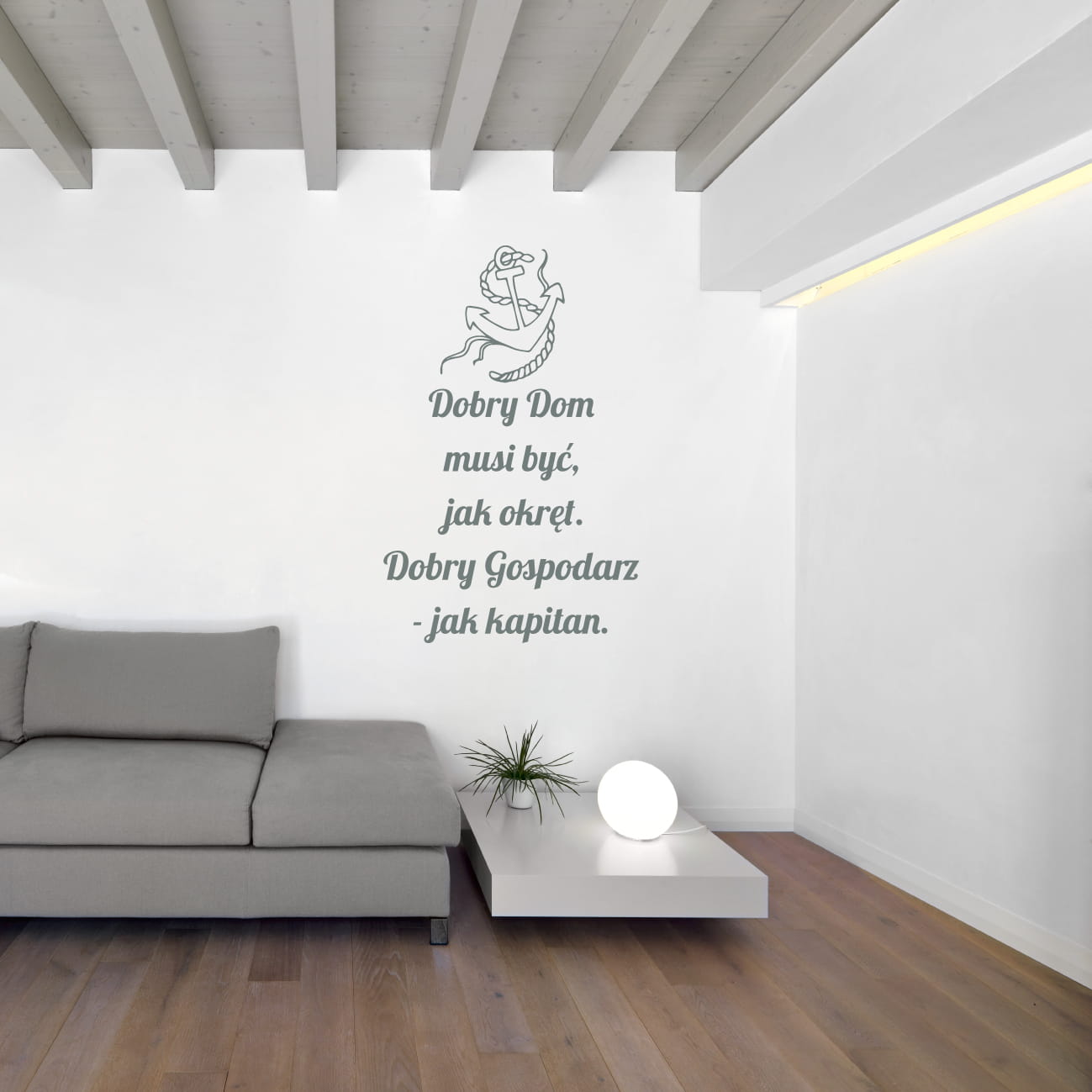 "Dobry dom musi być jak okręt. Dobry gospodarz - jak kapitan." To słowa, które przypominają nam o ważnej roli, jaką odgrywa gospodarz w swoim domu. Nasza naklejka ścenna to połączenie mądrości z grafiką kotwicy, symbolu stabilności i bezpieczeństwa.