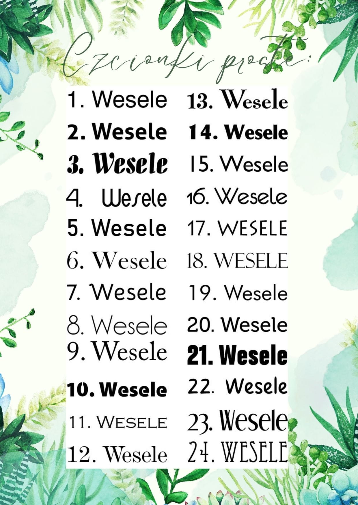 2. Numer czcionki, którą mają być wykonane wzory (można wybrać max. dwie czcionki na projekt, zalecamy wybrać jedną czcionkę ozdobną, jedną prostą)