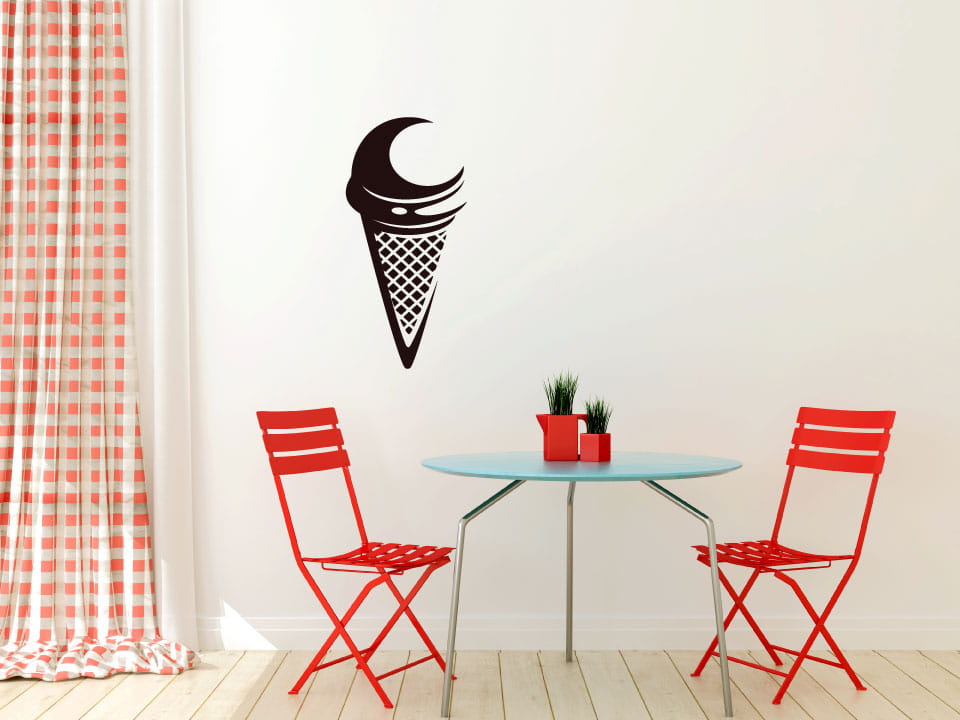 Ta dekoracyjna naklejka ścienna doskonale sprawdzi się w przestrzeniach związanych ze słodkimi wypiekami i deserami — w cukierniach, lodziarniach, kawiarniach czy w domowej kuchni. Wyrazisty, graficzny motyw nadaje wnętrzu lekkości i przyjemnego, apetycznego charakteru, który zachęca do sięgania po ulubione słodkości.