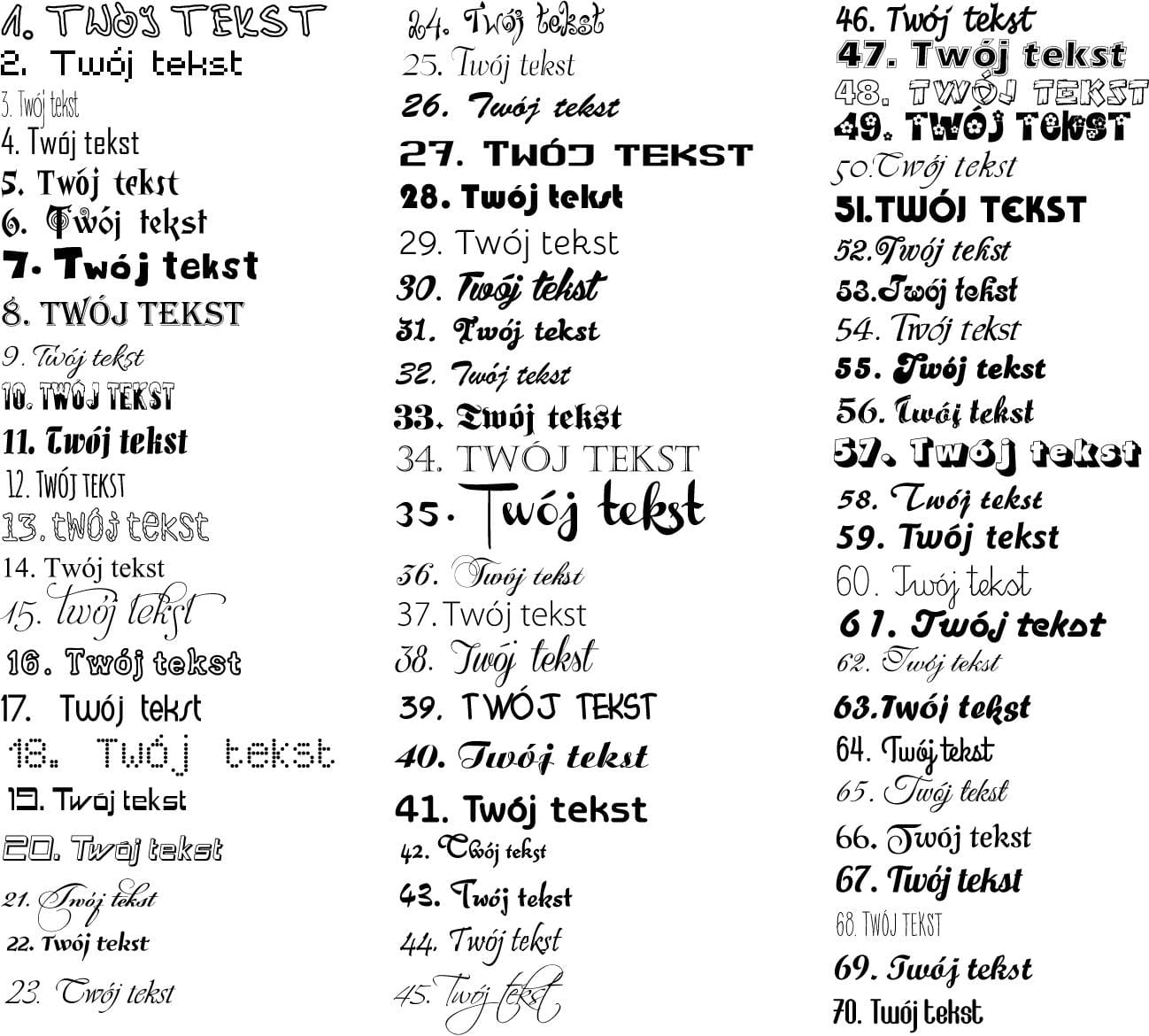 2. Numer czcionki, którą mają być wykonane wzory (w przeciwnym razie naklejki zostaną wykonane przy użyciu losowej czcionki)